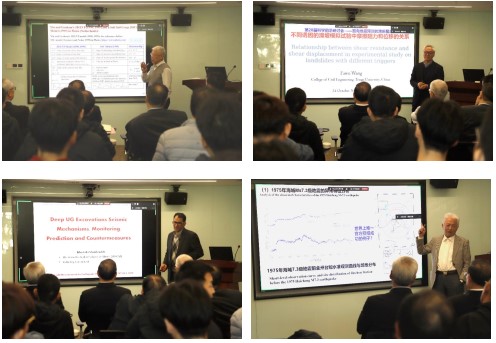 随后,殷建华教授作了题为“From Nonlinear Rheological Theory to New Land Reclamation Method (from 1986 to 2024)”的特邀报告,汪发武院士、Mostafa副教授、陈光齐院士、何满潮院士分别作了题为“Relationship Between Shear Resistance and Shear Displacement in Experimental Study on Landslides with Different Triggers”、“Deep Underground Excavation Seismic Mechanisms, Monitoring, Prediction and Countermeasures”、“Current Status and Future Trends of Cross-Fault Monitoring Technology”、“Cross-Fault Measurement for Earthquake Prediction”的学术报告。