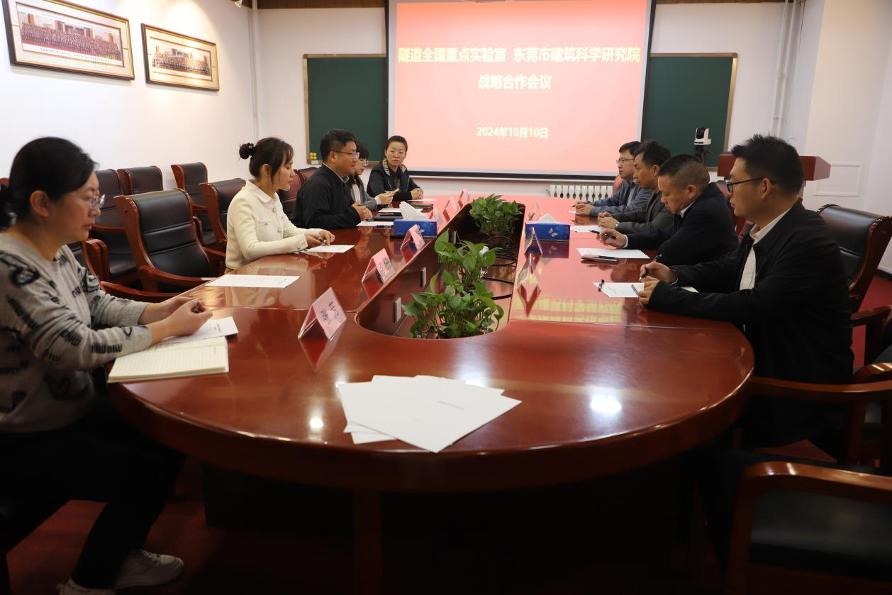 2024年10月10日,隧道工程灾变防控与智能建养全国重点实验室与东莞市建筑科学研究院在隧道国重实验室101会议室签署战略合作协议。隧道国重实验室执行主任陶志刚教授、东莞建科院院长张彤炜、东莞城市工程建设集团有限公司董事长阳凤萍等出席签约仪式。