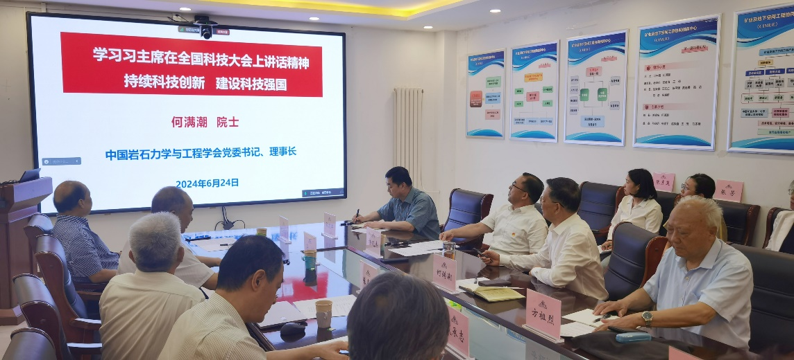 会上,隧道国重实验室主任何满潮院士做题为《学习习主席在全国科技大会讲话精神 持续科技创新 建设科技强国》的专题党课报告,领学习近平总书记在全国科技大会、国家科学技术奖励大会、两院院士大会上的重要讲话精神。