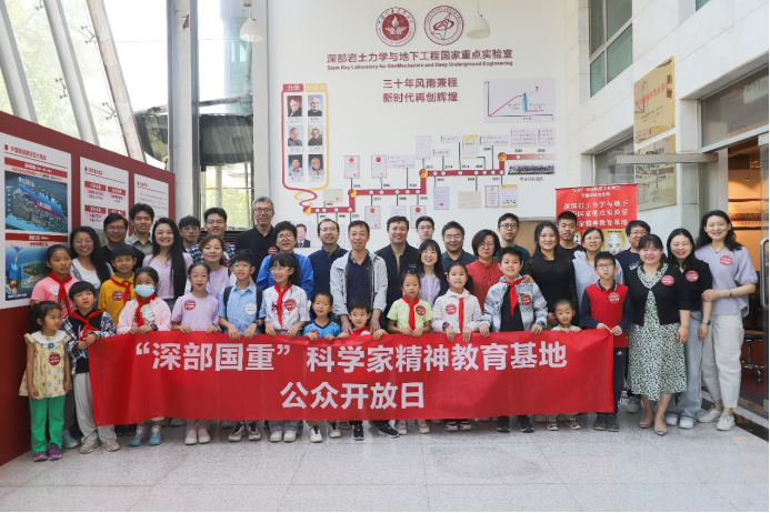正值2024年全国科技工作者日与全国科技活动周,5月26日,“深部岩土力学与地下工程国家重点实验室科学家精神教育基地”(以下简称“基地”)开展的公众开放日活动,迎来了一批中小学生及科研工作者,共同开启了一场以弘扬科学家精神、播撒科学的种子、点亮科技智慧之光的研学之旅。实验室主任何满潮院士,副主任刘冬桥、黄蓉等出席了活动,并与参观团队合影留念,鼓励他们在今后的学习和生活中继续发扬科学家精神,追求科学梦想。