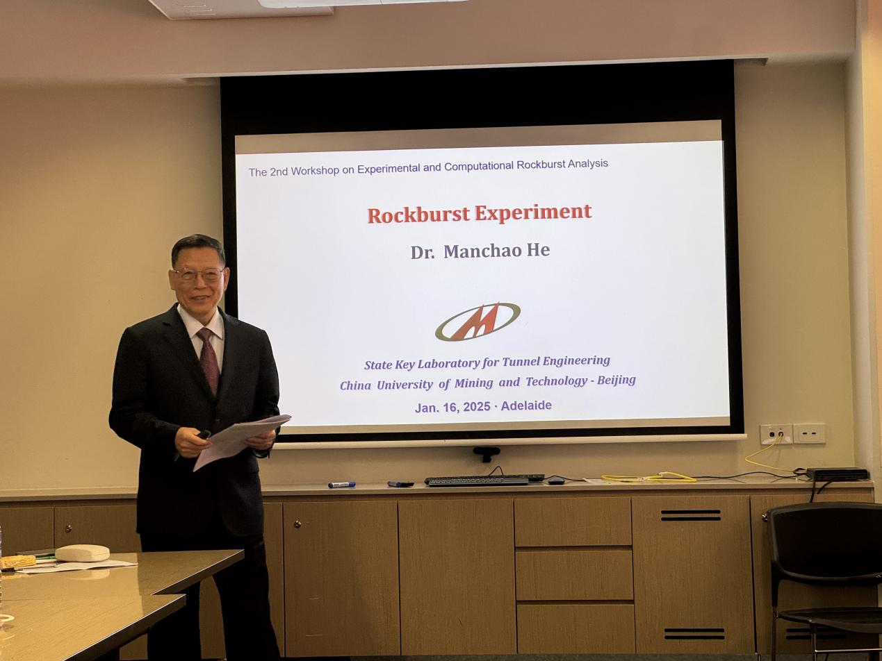 2025年1月15-17日,第二届岩爆专题研讨会在澳大利亚阿德莱德大学成功召开。会议由国际岩石力学与岩石工程学会岩爆专委会(ISRM Commission on Rockburst)主办、阿德莱德大学承办。ISRM岩爆专委会主席、隧道国重主任何满潮院士率队赴澳出席本次会议,并作题为“Rockburst Experiment”的主旨报告。