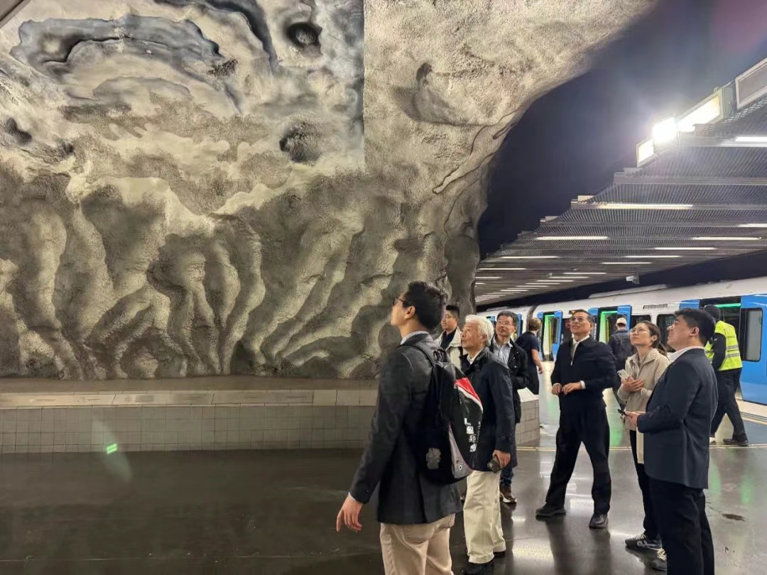 会后,何院士率领代表团实地考察了被誉为“工程与艺术完美结合”典范的斯德哥尔摩地铁工程,对该工程75年来保持良好稳定性的技术特点和设计理念进行了实地调研。