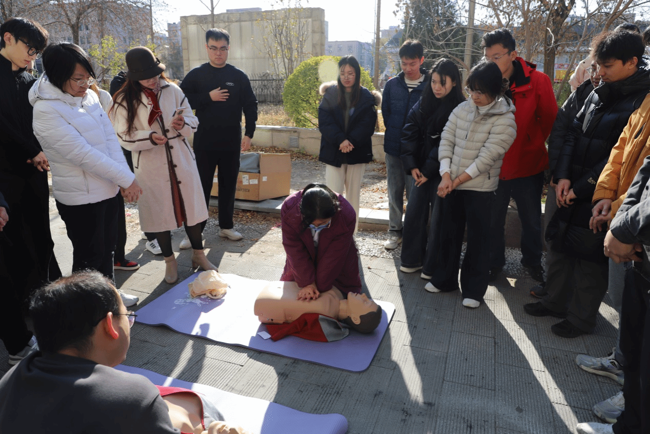 报告专家系统讲解了实验室安全与消防安全的要点,结合真实案例剖析,引导师生提升安全意识、掌握基本消防技能。随后,在实验区开展了应急演练,模拟走廊突发浓烟情景,立即启动紧急疏散预案,师生迅速有序撤离至室外指定区域。在现场点火演示环节,保卫处老师详细讲解了灭火器与消防栓的正确操作方法,并指导师生逐一进行实操练习。校医院医生还现场演示了心肺复苏、创伤包扎等急救项目,通过手把手教学,师生在实践中掌握了基本急救技能。