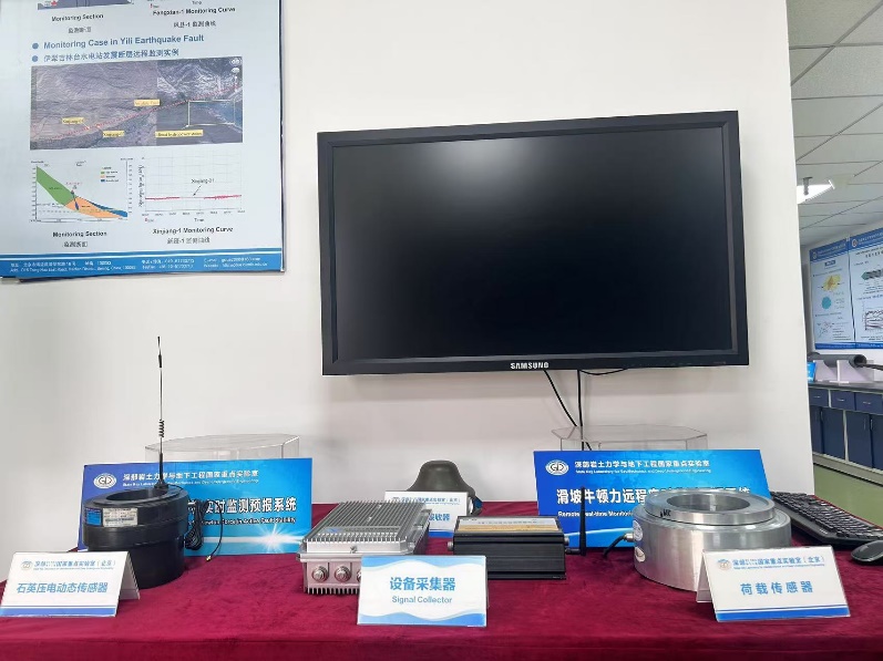 地质灾害模拟与监控系统,主要包括数据接收设备、数据处理软件系统、数据显示系统。主要针对滑坡牛顿力演化规律实现实时监测,灾变数据经过分析处理后能够及时用于灾变预警预报,从而加强灾害监测综合防治能力并提高预测预警的准确性和时效性,